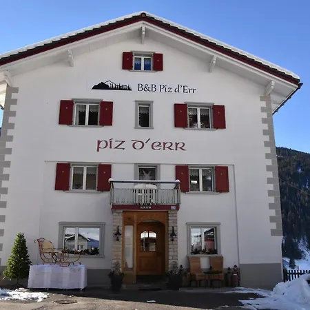 St. Blasius catholic church with rectory se encuentra a poco más de 5 minutos a pie de este hotel, y parajes naturales como Piz Mitgel están a 10 minutos en coche. Las atracciones ubicadas a 2 km de este bed and breakfast de 3 estrellas incluyen los Alpes de Oberhalbstein. Los huéspedes pueden visitar lugares de interés histórico, como Riom Castle, situado a unos 15 minutos en coche del B&B Piz D'Err, y aprender más sobre Tinzen. El lugar está a un corto paseo de la parada de autobús Cadras, bien conectado con numerosos lugares de interés. El aeropuerto más cercano es Lugano, situado a 145 km del hotel.